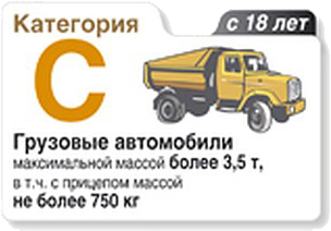 Категория С в правах дает возможность водить грузовики с такими характеристиками: